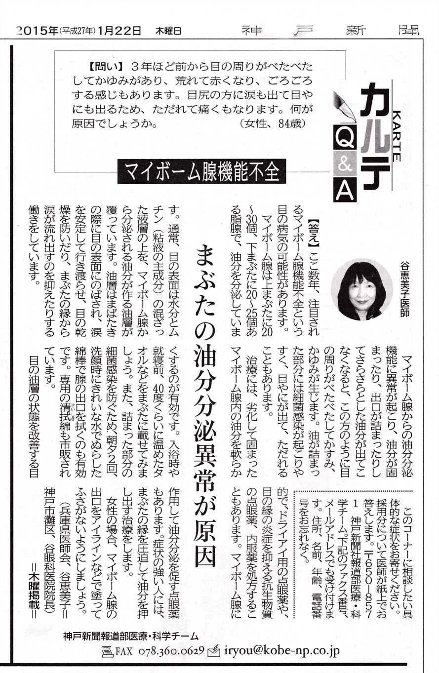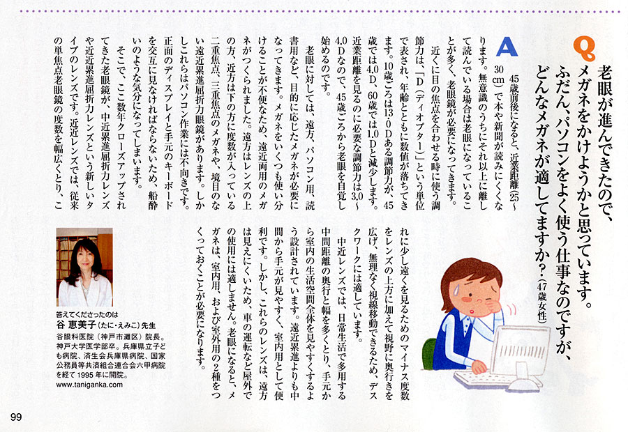 2005年4月、鶴書院より、目に関する疑問、質問に図解入りで答えながら、折に触れ感じたこと、思ったことをエッセイ風にモノローグとして織りまぜた本「Dr.エミコの何で訊けちゃう目の相談室」を出版させていただきました。